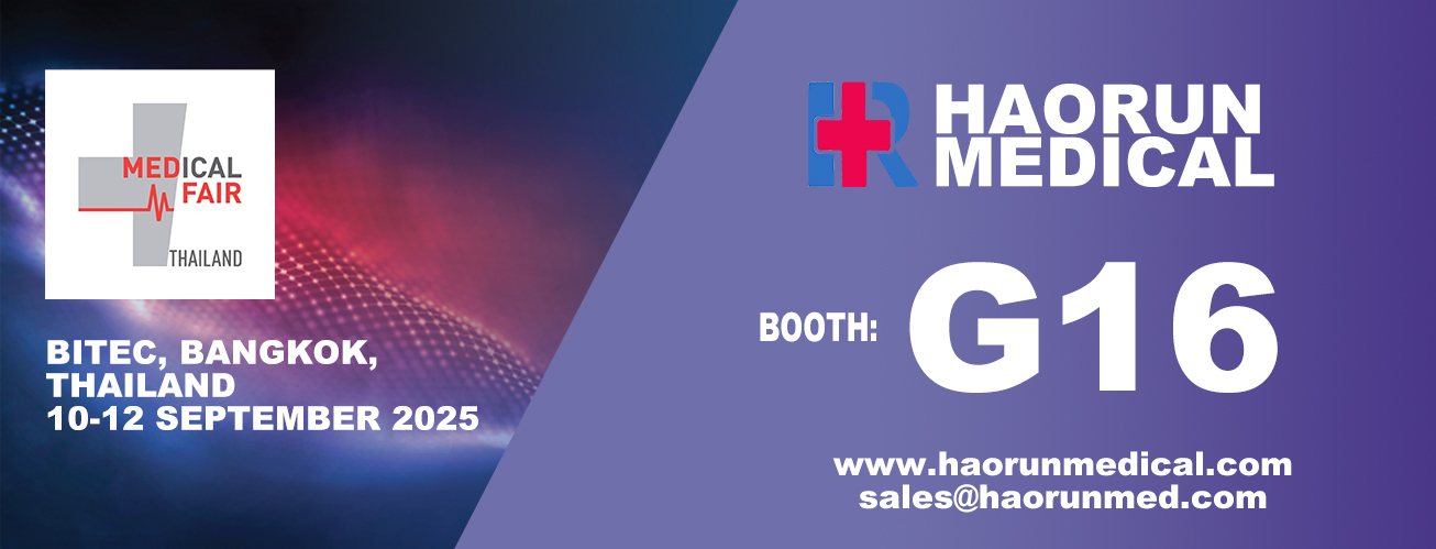 Auf dieser Ausstellung bietet Ihnen Haorun Medical Products Co., Ltd detaillierte Produkteinführungen und Beratungsdienste. Wir freuen uns auf eine eingehende Kommunikation mit Ihnen und suchen nach Möglichkeiten für die Zusammenarbeit, und wir freuen uns auch darauf, Ihre Vorschläge zu erhalten. Schließlich ist Haorun Medical Products Co., Ltd. geehrt, Sie einzuladen, an der kommenden medizinischen Fair -Thailand 2025 teilzunehmen.